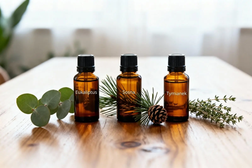 - Olejki na katar i zatoki: eukaliptus, sosna, tymianek