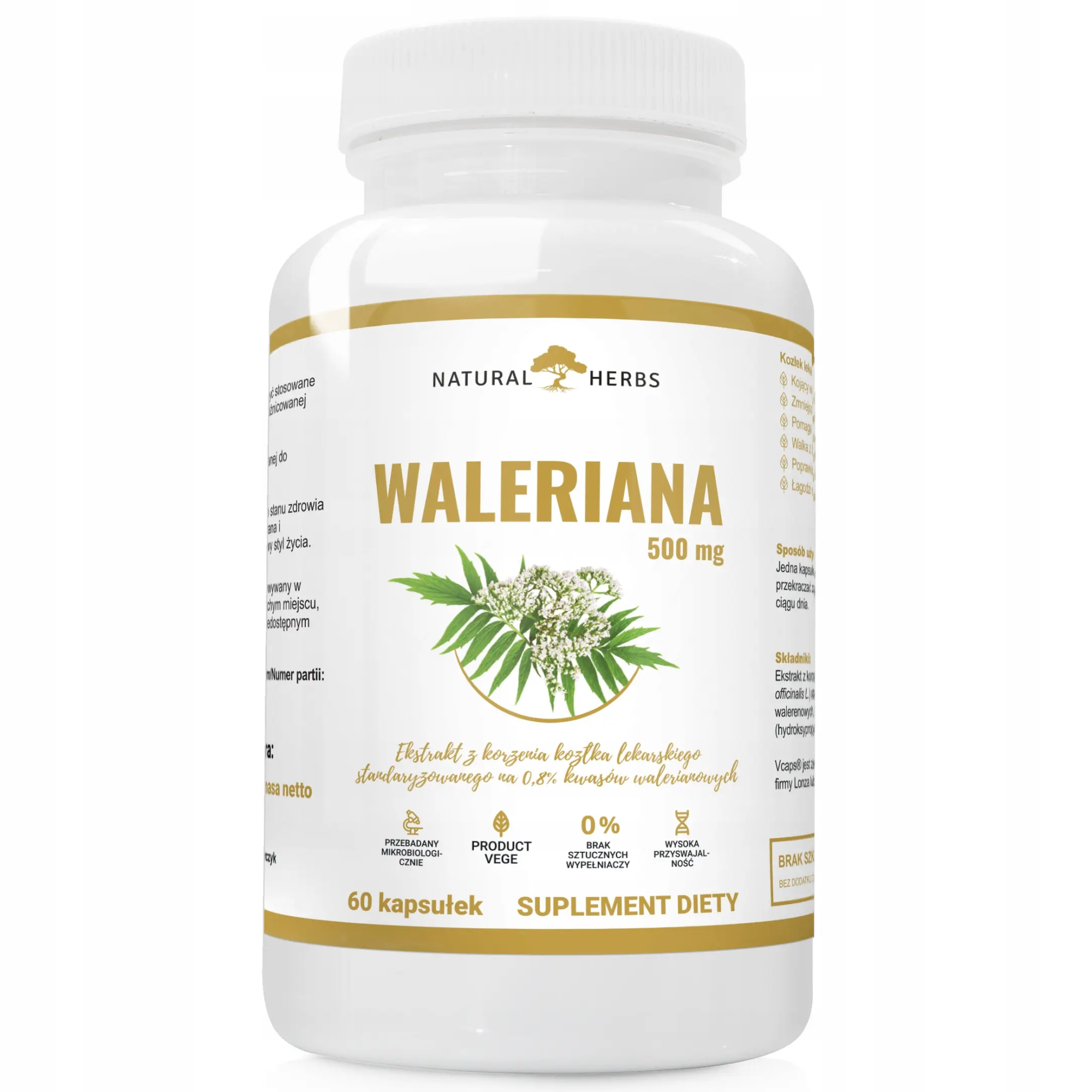 • Ekstrakt z korzenia kozłka lekarskiego (Valeriana officinalis L.) - 500mg