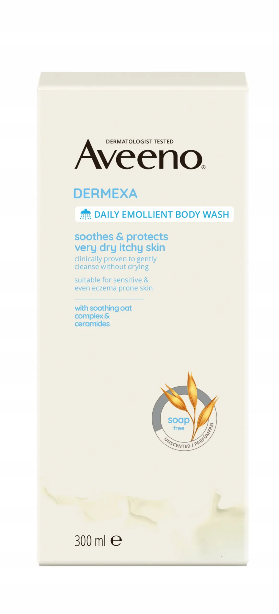 Aveeno Dermexa Emolientowy żel do mycia został opracowany na bazie łagodzącego kompleksu owsa i ceramidów. Sprawdzona klinicznie, wegańska formuła o wysokiej tolerancji delikatnie oczyszcza bez wysuszania, pozostawiając skórę odczuwalnie ukojoną i odżywioną. Żel łagodzi i chroni bardzo suchą, wrażliwą i swędzącą skórę. Jego formuła jest bezzapachowa, nie zawiera mydła i jest w 98% biodegradowalna. Jest odpowiedni również dla osób ze skłonnością do chorób skóry, takich jak egzema.