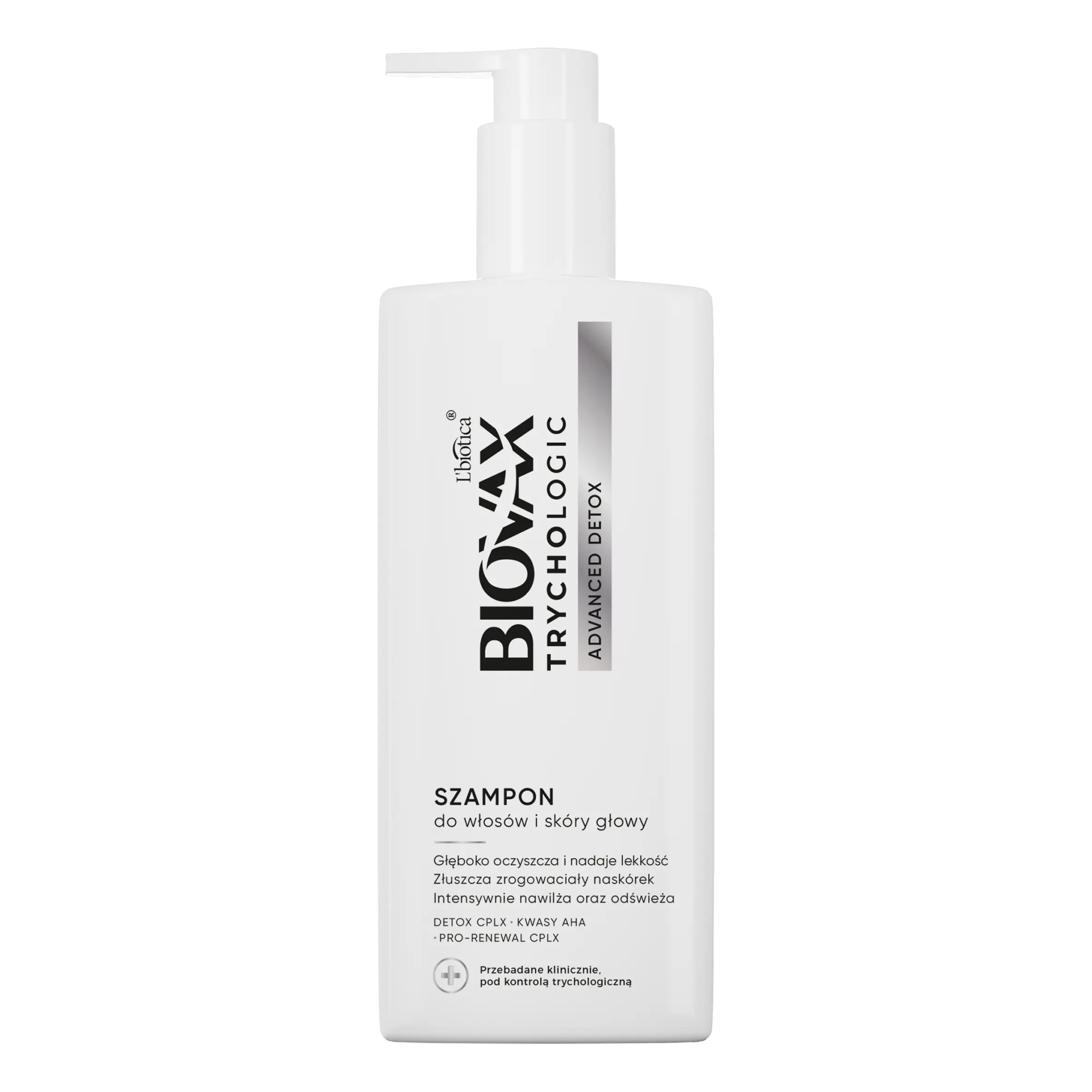Przebadany klinicznie, pod kontrolą trychologiczną, głęboko oczyszcza i nadaje lekkość. Złuszcza zrogowaciały naskórek i intensywnie nawilża oraz odświeża. Biovax TrychoLogic to linia stworzona w oparciu o prawidłową logikę w podejściu do pielęgnacji włosów, której podstawą jest zdrowa skóra głowy. Trychologiczna kuracja detoksykująco-regenerująca. Aktywny Detox CPLX wraz z dodatkiem czynnika chelatującego dokładnie oczyszczają obciążone włosy, przywracając lekkość, sypkość i objętość. Skutecznie usuwają zanieczyszczenia, pozostałości po produktach do stylizacji, a także neutralizują osadzające się na włosach jony metali. Zawarte w formule kwasy AHA rozpuszczają nagromadzony martwy naskórek i redukują nadmiar sebum, natychmiastowo odświeżając skórę. Przygotowują ją do pielęgnacji, którą już na etapie mycia zapewnia intensywnie nawilżający Pro-Renewal CPLX.