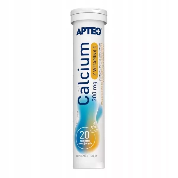 Apteo Calcium z witaminą C 300 mg – Smak pomarańczowy – 20 tabletek musujących