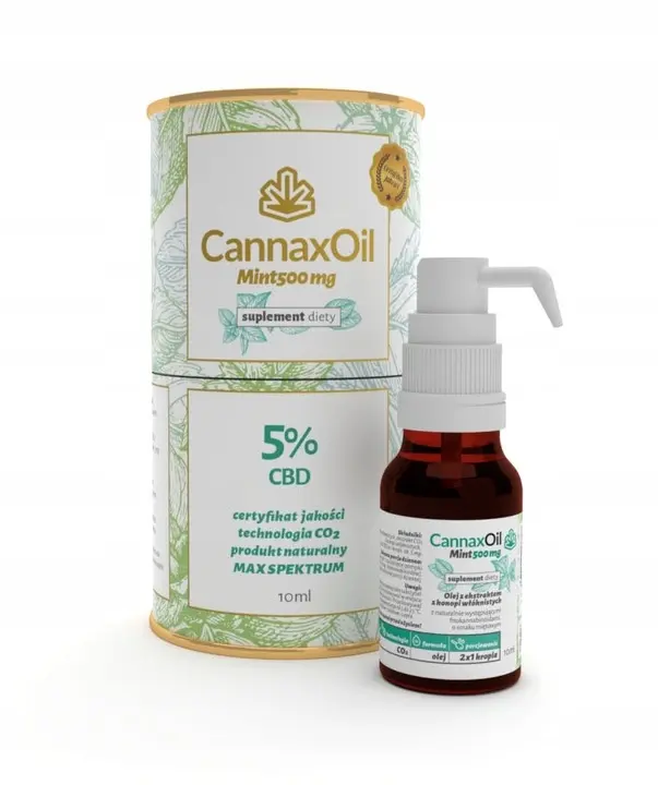 Cannax Oil 500mg - olej konopny CBD z wyciągiem z mięty 5% 10ml Olej z ekstraktem z konopi włóknistych z naturalnie występującymi fitokannabinoidami.