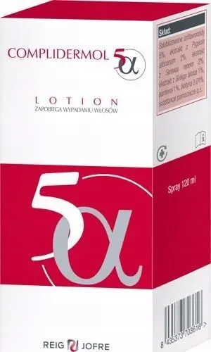 COMPLIDERMOL 5alfa Lotion to preparat, który opracowano z myślą o osobach chcących zmniejszyć wypadanie włosów, pobudzić ich wzrost i wzmocnienić strukturę. Kosmetyk doskonale sprawdzi się również przy włosach cienkich i delikatnych. Preparat posiada unikalny skład w którym znajdują się m.in. izoflawonoidy, ekstrakt z miłorzębu japońskiego, pantenol oraz biotyna.