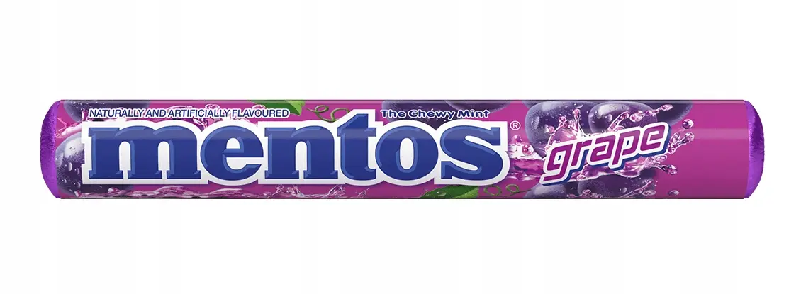 Klasyczne Mentosy w owocowej odsłonie – miękkie cukierki do żucia o intensywnym smaku winogron.
