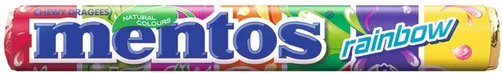 Odkryj tęczę owocowych smaków w jednej rolce! Mentos Rainbow to pyszne cukierki do żucia, które zabiorą Cię w podróż po siedmiu soczystych smakach – od słodkiej truskawki, przez orzeźwiającego grejpfruta, aż po letniego arbuza. Każdy cukierek to inna, pyszna niespodzianka.