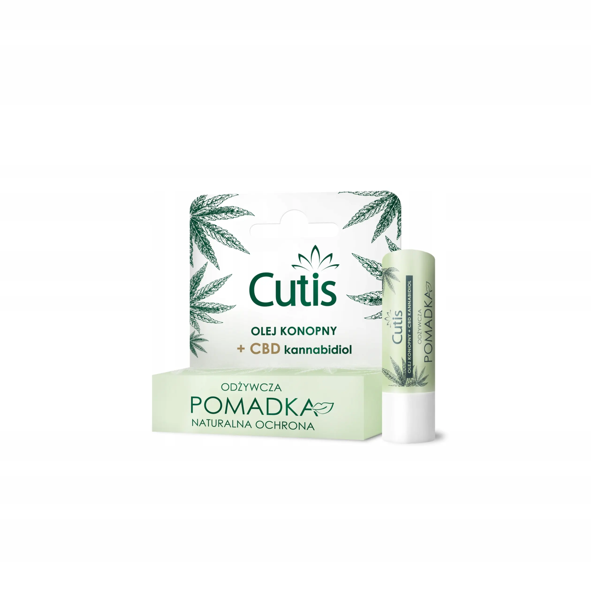 Olej z nasion konopi siewnych, ekstrakt CBD - kannabidiolu, olejek rycynowy, wosk pszczeli, witamina E