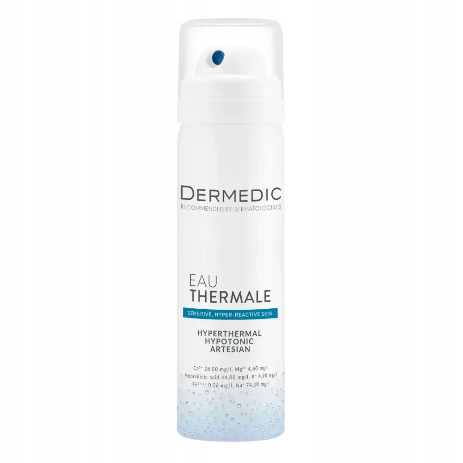 Innowacyjny system podwójnego pakowania gwarantuje brak dostępu powietrza oraz oddzielenie produktu od gazu napędowego i metalowej puszki. Dzięki temu Woda Termalna Dermedic jest chroniona przed zanieczyszczeniem. Ponadto spray może działać w dowolnej pozycji butelki.