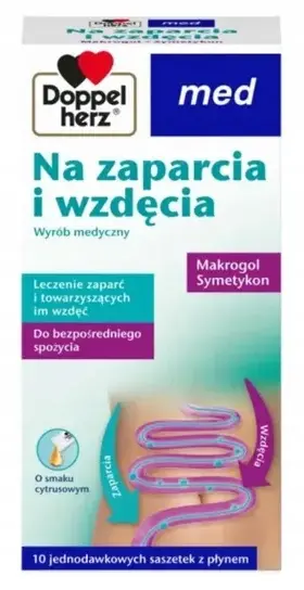 Podwójne działanie - makrogol ma dolność wiązania się ze spożywaną wodą, zatrzymując ją w stolcu, wspomaga nawadnianie i zmiękczanie masy kałowej i ułatwianie jej wydalenia. Przyśpiesza pasaż jelitowy poprzez pobudzenie perystaltyki. Symetykon działa poprzez zmniejszenie napięcia powierzchniowego pęcherzyków gazu występujących w przewodzie pokarmowym, ułatwiając ich usuwanie. Usuwa gazy jelitowe poprzez co zmniejsza uczucie wzdęcia i rozdęcia jamy brzusznej.
