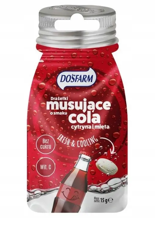 Musujące drażetki szybko rozpuszczające się w ustach, dające natychmiastowe uczucie świeżości i przyjemny posmak; słodzone sorbitolem, wzbogacone witaminą C. Opakowanie 15 g w kształcie buteleczki z zamknięciem strunowym dla zachowania świeżości.