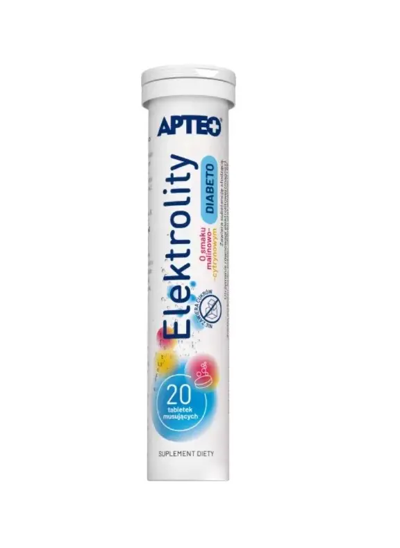 Elektrolity Diabeto APTEO to suplement diety, którego składniki wpływają korzystnie na utrzymanie równowagi elektrolitowej (magnez) oraz na utrzymanie prawidłowego poziomu glukozy we krwi (cynamonowiec cejloński).