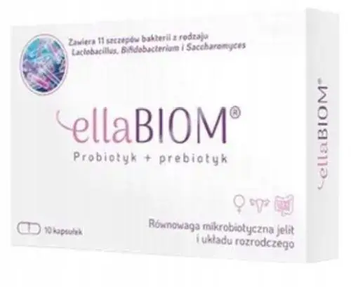 Ellabiom kaps. 10 kaps. - suplement diety w postaci kapsułek, który w swoim składzie zawiera probiotyk i prebiotyk. Produkt przeznaczony dla dorosłych i dzieci powyżej 6. roku życia.