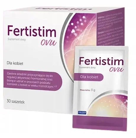 Suplement diety Wsparcie przy PCOS i przedłużających się staraniach o dziecko. Innowacyjny składnik Caronositol Fertility Tylko 1 saszetka dziennie! Pyszny smak owoców leśnych Aktywna forma kwasu foliowego Caronositol Fertility stanowi opatentowaną formułę mio-inozytolu i D-chiro-inozytolu Foliany wspierają prawidłowy metabolizm homocysteiny oraz uczestniczą w procesie podziału komórek, w tym również komórek jajowych. U osób z uwarunkowanym genetycznie niedoborem enzymów odpowiedzialnych za redukcję folianów może występować trudność w ich właściwym przyswajaniu. Dlatego w preparacie Fertistim ovu zastosowano innowacyjną, wyjątkowo dobrze przyswajalną formę kwasu foliowego – L-metylofolian wapnia. Witamina D3 wspomaga prawidłowe funkcjonowanie układu odpornościowego oraz uczestniczy w procesach podziału komórek. Witamina B6 przyczynia się do regulacji aktywności hormonalnej i pomaga w utrzymaniu prawidłowego metabolizmu homocysteiny. Astaksantyna to naturalny karotenoid o szerokim spektrum działania biologicznego, wytwarzany przez algi Haematococcus pluvialis. W organizmach tych pełni rolę ochronnej bariery przed niekorzystnymi czynnikami środowiskowymi. Astaksantyna zawarta w preparacie pozyskiwana jest wyłącznie naturalnie, w kontrolowanych warunkach, co gwarantuje jej wysoką jakość. W skład Fertistim ovu wchodzi również ekstrakt z owoców gorzkiego melona, wykazujący aktywność enzymatyczną. Obecne w nim enzymy, takie jak dysmutaza ponadtlenkowa (SOD), stanowią ważny element systemu antyoksydacyjnego, który chroni komórki organizmów żywych przed stresem oksydacyjnym.