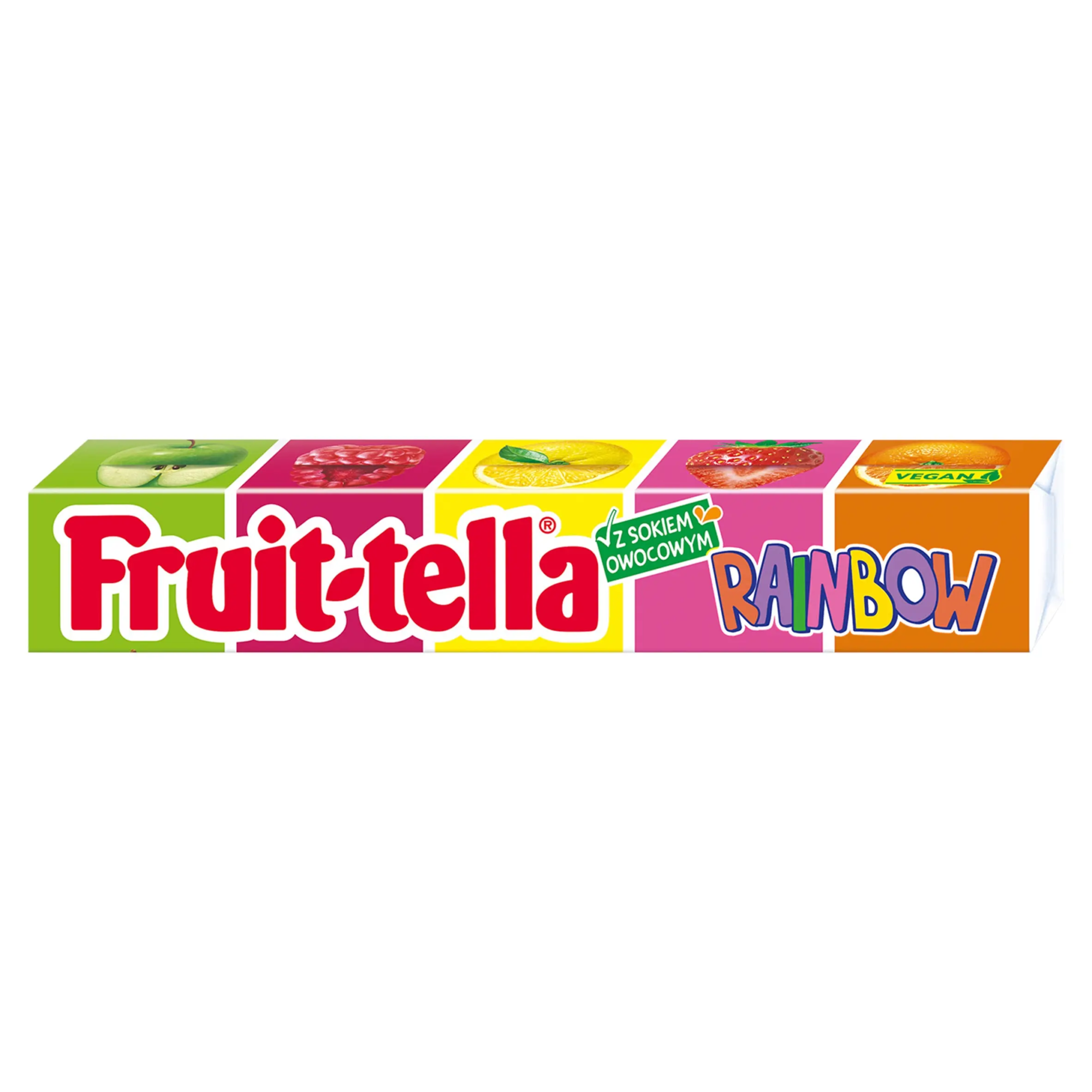 Fruittella Rainbow to kolorowe cukierki do żucia o intensywnym, owocowym smaku, które od lat cieszą zarówno dzieci, jak i dorosłych. Każdy cukierek powstaje wyłącznie z naturalnych aromatów i barwników, dzięki czemu możesz cieszyć się smakiem natury w najlepszym wydaniu.