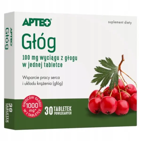 Suplement diety w postaci tabletek, zawierający wyciąg z owoców głogu dwuszyjkowego. Głóg wspiera pracę serca i układu krążenia.