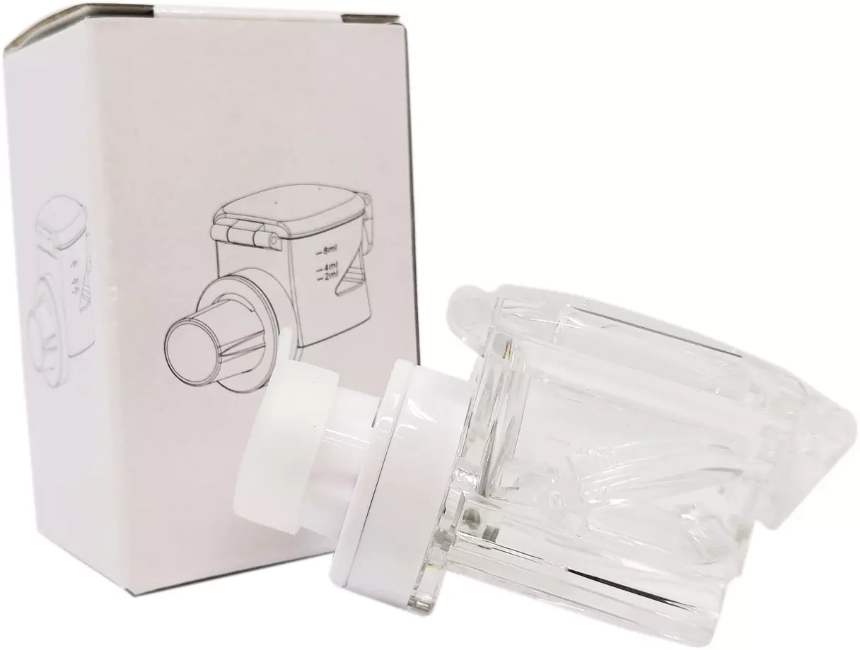Głowica została zaprojektowana z myślą o maksymalnej precyzji i wygodzie. Technologia siateczkowa (mesh) zapewnia optymalne rozbicie cząsteczek płynu, co pozwala na jego głębsze dotarcie do dróg oddechowych. Przezroczysty pojemnik na płyn o pojemności od 2 do 8 ml, wyposażony w czytelną podziałkę, ułatwia precyzyjne dawkowanie. Szczelne zamknięcie chroni przed przypadkowym wylaniem cennego płynu, wspierając poczucie bezpieczeństwa i komfortu.
