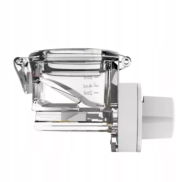 - Ułatwienie Kontroli Dawkowania: Przezroczysty pojemnik z wyraźną podziałką (min. 2 ml, max. 8 ml) umożliwia dokładne odmierzenie dawki i stałe monitorowanie poziomu płynu.