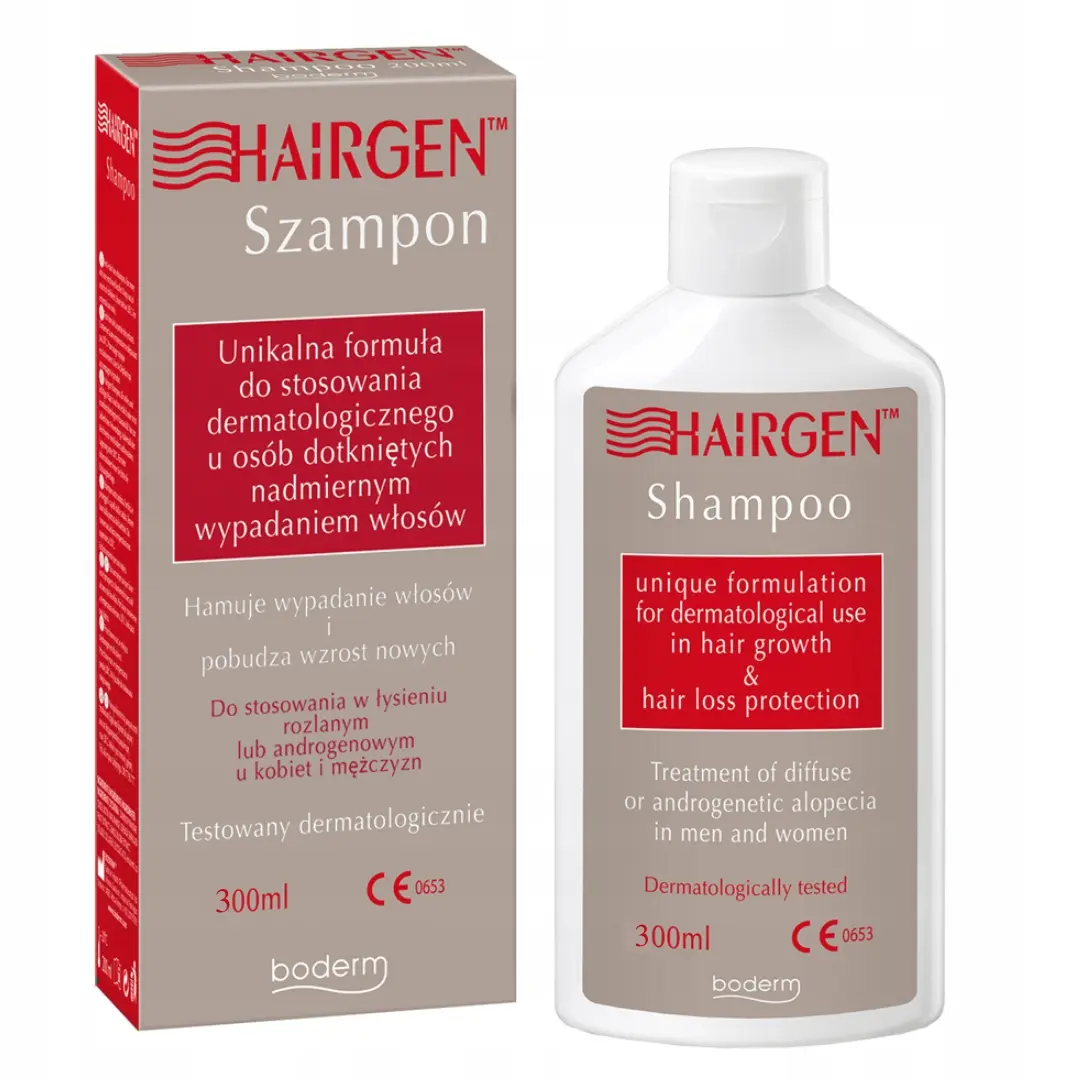 Szampon dermatologiczny, wyrób medyczny do skóry głowy stosowany przy występowaniu objawów łysienia androgenowego i rozlanego oraz nadmiernego wypadania i przerzedzania włosów. Składniki aktywne szamponu blokują nadmierne wiązania się androgenów ze swoim receptorem oraz rozszerzają naczynia krwionośne, hamując procesy łysienia androgenowego, będącego przyczyną 95% wszystkich przypadków utraty włosów.