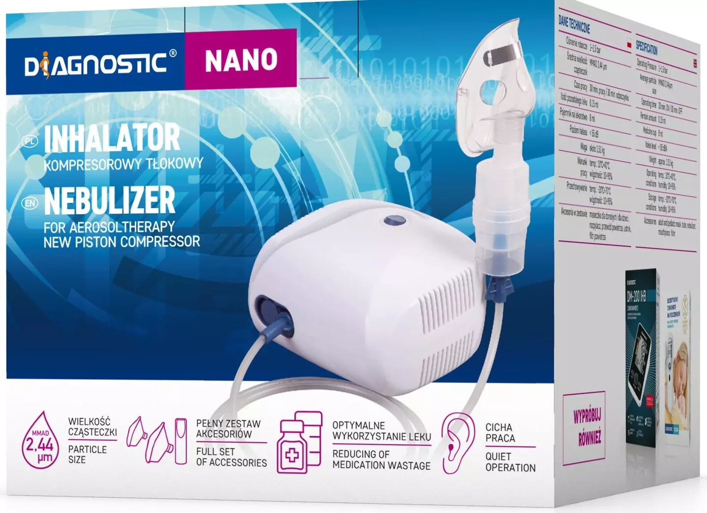 Zapewnij sobie i swojej rodzinie efektywne wsparcie w dbaniu o drogi oddechowe dzięki inhalatorowi Diagnostic Nano. To nowoczesny wyrób medyczny, który przekształca przepisany preparat w delikatną mgiełkę, docierającą tam, gdzie jest najbardziej potrzebna – wprost do oskrzeli i płuc.