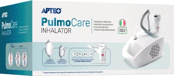 Inhalator Apteo PulmoCare wspiera funkcjonowanie dróg oddechowych. Zaprojektowany z myślą o maksymalnej skuteczności i komforcie, ten nowoczesny inhalator kompresorowy zapewnia precyzyjną terapię dla całej rodziny – od objawów przeziębienia po schorzenia oskrzeli i płuc.
