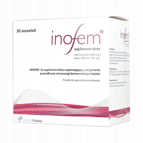 Inofem - suplement diety zawierający w składzie mio-inozytol i kwas foliowy wspomagające utrzymanie prawidłowej równowagi hormonalnej u kobiet. Produkt przeznaczony dla osób dorosłych.