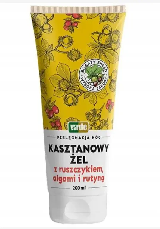 Virde kasztanowy żel z ruszczykiem, algami i rutyną to produkt przeznaczony do codziennej pielęgnacji skóry nóg. Przyczynia się do zmniejszenia niedoskonałości w postaci tzw. pajączków, a zawarte w nim składniki jednocześnie pobudzają produkcję kolagenu, elastyny i lamininy- białka znajdującego się w błonie komórkowej i przestrzeni międzykomórkowej. Skóra po zastosowaniu kosmetyku staje się ujędrniona, zregenerowana, wzmocniona i przywrócony zostaje jej zdrowy wygląd.