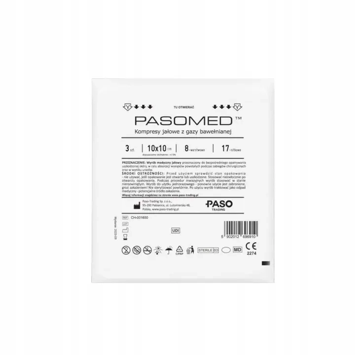 Każdy z trzech kompresów w opakowaniu jest pakowany indywidualnie i sterylnie. Oznacza to, że masz pewność zachowania pełnej jałowości aż do chwili otwarcia, co pomaga minimalizować ryzyko infekcji. Niezależnie od tego, czy potrzebujesz zaopatrzyć niewielkie skaleczenie, czy ranę po zabiegu chirurgicznym, kompresy Pasomed są gotowe do natychmiastowego użycia, zapewniając spokój ducha i skuteczną pierwszą pomoc.