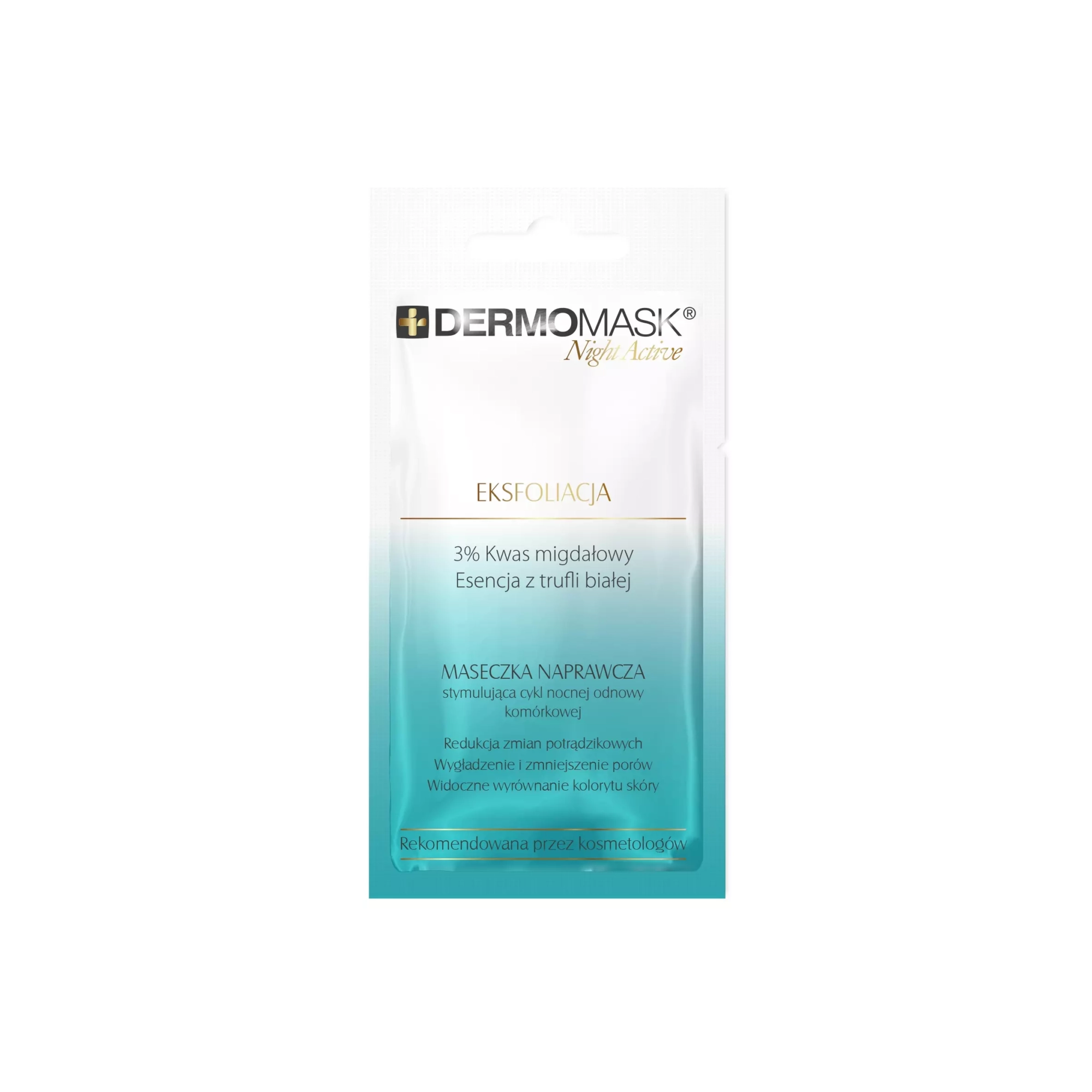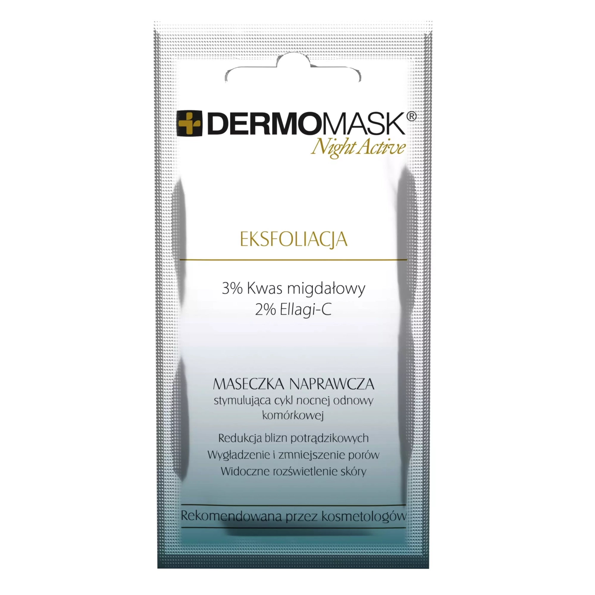 Każda maseczka z linii Dermomask Night Active posiada unikalny, specjalistyczny skład. Pełna lista składników (INCI) dla wybranego wariantu znajduje się na opakowaniu produktu. Kluczowe składniki aktywne wykorzystywane w serii to między innymi: Aqua, Glycerin, Hydrogenated Polydecene, Glyceryl Stearate, Persea Gratissima (Avocado) Oil, Kwas Hialuronowy, Palmitoyl Tripeptide-38, Tuber Magnatum Extract, Colloidal Gold, Undaria Pinnatifida Extract, Kwas Migdałowy, Sodium Ascorbyl Phosphate (Witamina C), Laminaria Ochroleuca Extract, Caviar Extract, Centella Asiatica Extract, Kofeina, Glukonian Cynku, Miedzi i Magnezu.