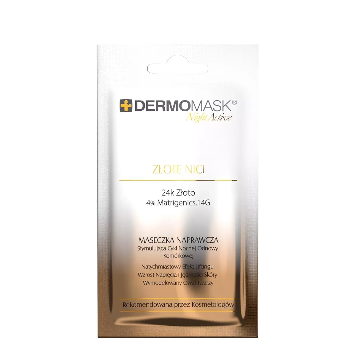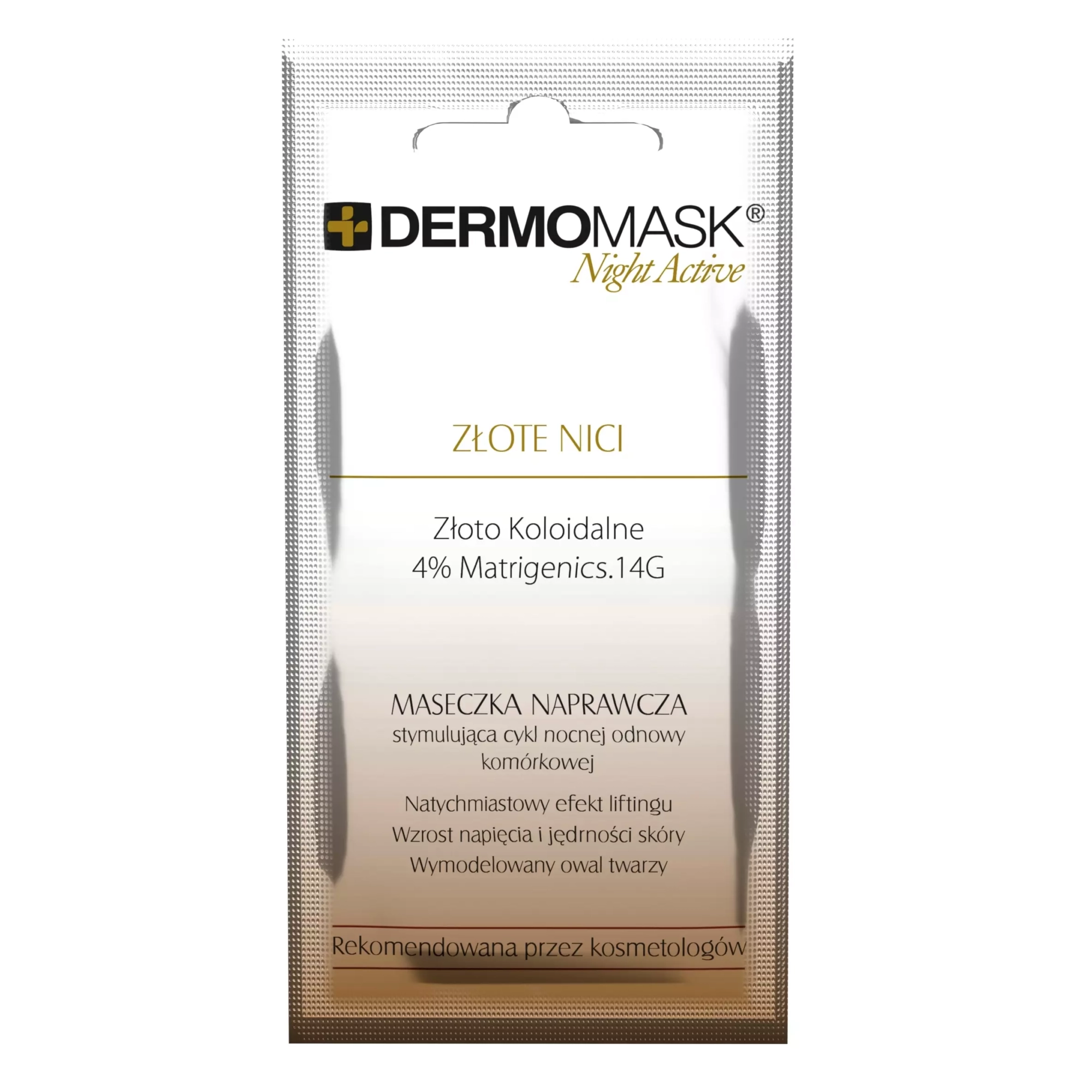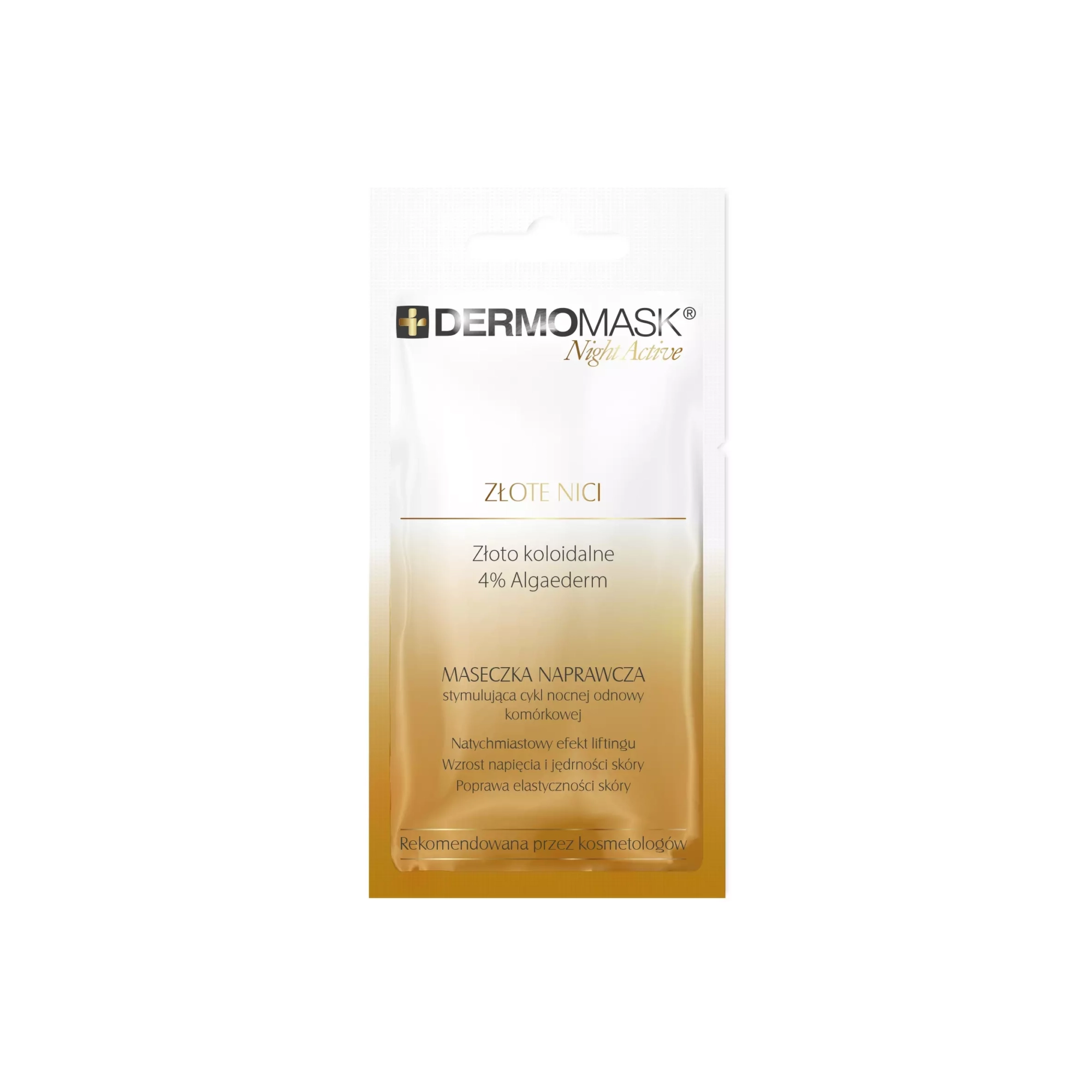 Podaruj swojej skórze luksusową pielęgnację, której efekty mogą wspierać wygląd skóry podobnie do profesjonalnych zabiegów kosmetycznych. Dermomask® Night Active Złote Nici to maseczka naprawcza, która wykorzystuje naturalny, wzmożony cykl nocnej odnowy komórkowej. Opracowana z myślą o cerze dojrzałej, wspiera jej naturalne piękno, działając wtedy, gdy Ty śpisz.