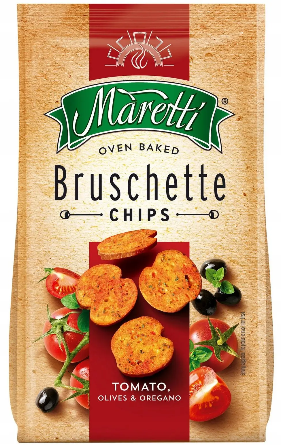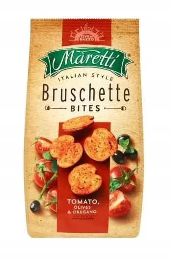 Bruschetta Maretti to wypiekane chipsy chlebowe, przygotowane ze starannie dobranych składników, wyśmienicie doprawione, dostępne w różnych smakach, idealne na każdą okazję.