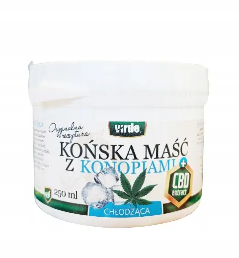 Wyprodukowana została z najwyższej jakości składników zgodnie z tradycyjną recepturą maści końskiej i wzbogacona dodatkowo ekstraktem CBD (kannabidiolem naturalnie występującym w roślinach konopi).Olej konopny zawarty w maści ma właściwości regeneracyjne, odżywcze i antyoksydacyjne. Jest bogaty w witaminy, fosfolipidy, fitosterole i minerały. Działanie oleju potęgują ekstrakty ziołowe z nagietka, żywokostu, kasztanowca, arniki, lawendy czy mięty pieprzowej. Mentol przyjemnie chłodzi skórę. CBD łagodzi napięcie skóry, odżywia, przyczynia się do jej regeneracji i zmiękczenia. Działanie: Przynosi ulgę i rozluźnienie, łagodzi uczucie „ciężkich nóg“ oraz dysfunkcje w okolicach kręgosłupa.