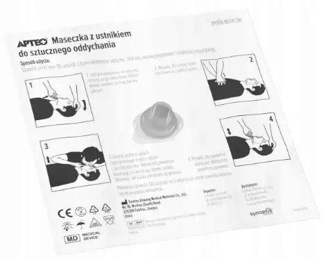Maseczka z ustnikiem do sztucznego oddychania to wyrób medyczny, który zmniejsza ryzyko zakażenia podczas resuscytacji krążeniowo-oddechowej. Wydłużony plastikowy ustnik pomaga uchwycić maseczkę ustami i zastosować sztuczne oddychanie. Dodatkowo chroni przed wydzielinami.