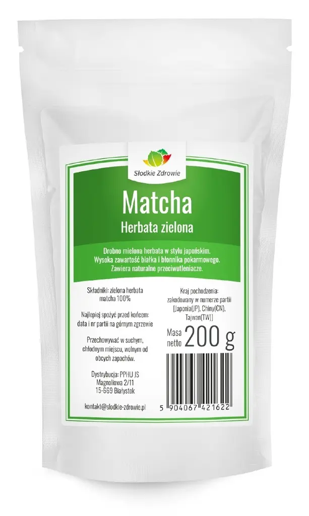 Drobno mielona herbata w stylu japońskim. Matcha jest źródłem antyoksydantów i przeciwutleniaczy. Reguluje poziom cukru we krwi i pozytywnie wpływa na układ nerwowy. Dodatkowo wspiera metabolizm i spadek cholesterolu LDL. Zawiera kofeinę, a także kilkukrotnie więcej L-teaniny niż zwykła zielona herbata. L-teanina działa uspokajająco oraz wpływa na zmniejszenie uczucia stresu i niepokoju.