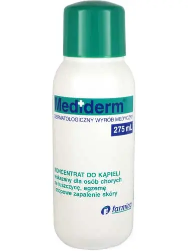 Wyrób medyczny FARMINA Mediderm koncentrat wskazany dla osób chorych na łuszczycę, egzemę i atopowe zapalenie skóry.