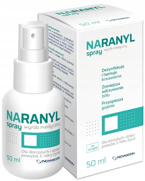 Wyrób medyczny NARANYL spray może być stosowany wspomagająco w leczeniu drobnych ran (skaleczenia, zadrapania, pęknięcia skóry, otarcia).