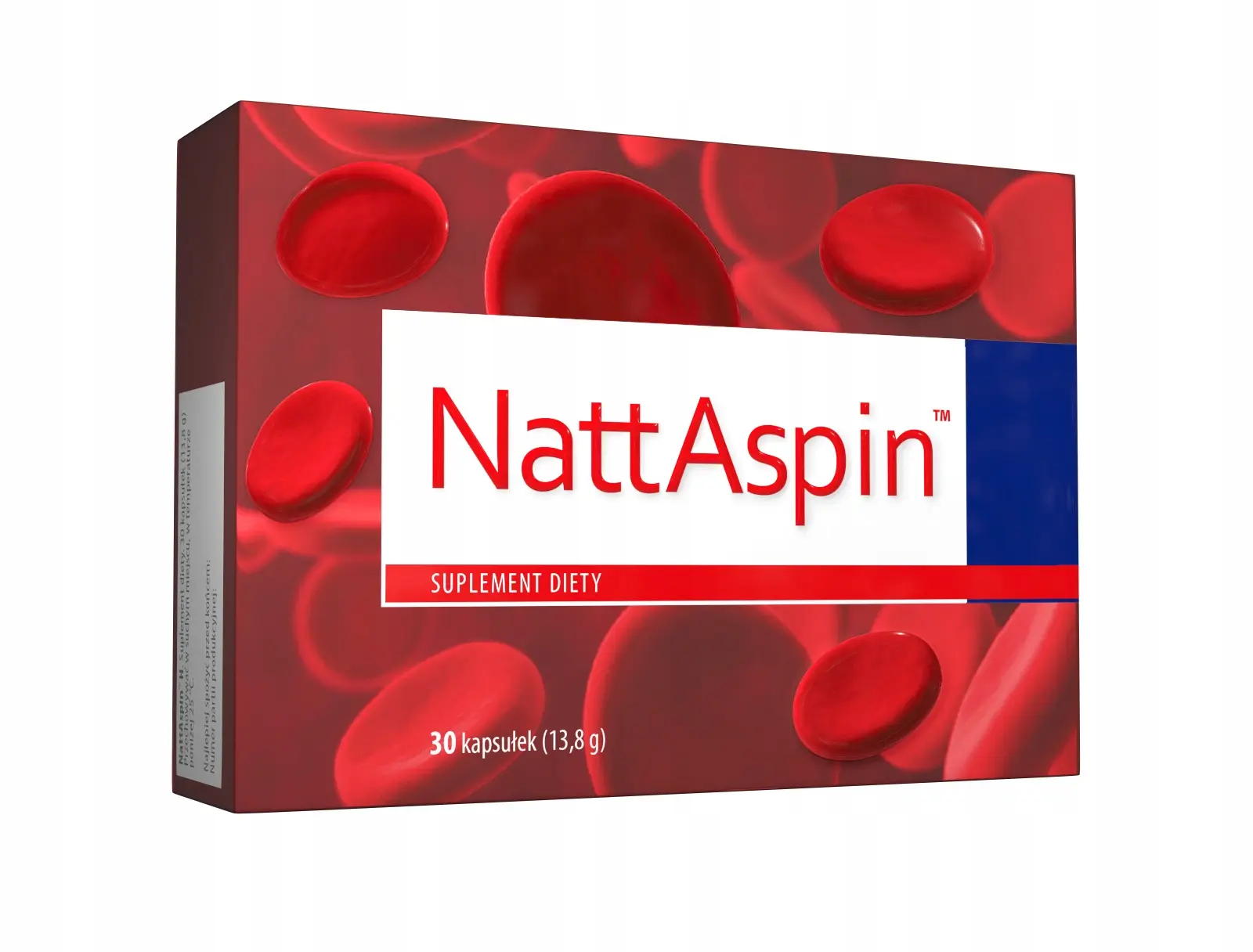 NattAspin to suplement diety zawierający 100 mg Nattkinazy (2000 FU, jednostek degradacji fibryny), wzbogacony dodatkowo ekstraktem z owoców oliwki europejskiej. Natykinaza to enzym powstający w wyniku fermentacji nasion soi z użyciem szczepu Bacillus subtilis, działa podobnie do plazminy jako silny enzym fibrynolityczny, pomagający w rozpuszczaniu skrzepów krwi. Nattkinaza wspiera naturalne mechanizmy obronne organizmu i polecana jest w profilaktyce zakrzepicy, chorobach niedokrwiennych serca, udarów, zawałów, zatorowości płucnej, skrzepliny w oku, zapalenia żył i hemoroidów. Może działać przeciwutleniająco, obniżać poziom trójglicerydów i cholesterolu LDL, zapobiegać miażdżycy. Hydroksytyrozol to przeciwutleniacz roślinny, związek fenolowy wyizolowany z owoców oliwek i ich liści. NattAspin jest bezpieczny dla osób chorych na cukrzycę, nie zawiera laktozy, ani glutenu.