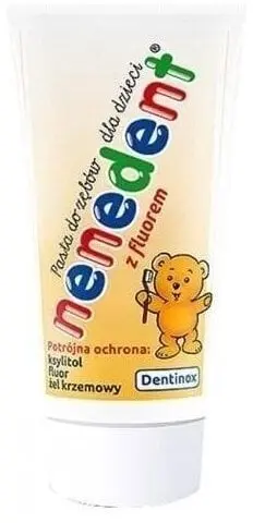 Pasta do zębów dla dzieci Nenedent zapewnia potrójną skuteczną ochronę zębów. Ksylitol zastępuje, niszczy bakterie wywołujące próchnicę. Fluor wzmacnia i utwardza szkliwo natomiast żel krzemowy dokładnie usuwa osad nazębny i chroni przed paradontozą.