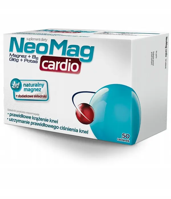 NeoMag Cardio to suplement diety uzupełniający niedobory składników wspomagających prawidłowe krążenie krwi i utrzymanie prawidłowego ciśnienia krwi. Produkt przeznaczony dla osób dorosłych.
