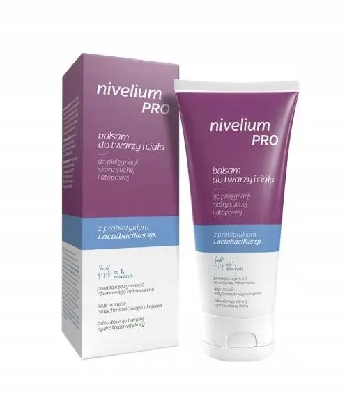 Balsam nivelium PRO do skóry suchej i atopowej skutecznie redukuje napięcie, łuszczenie i szorstkość skóry. Jest przeznaczony do pielęgnacji twarzy i ciała, a bezpieczny skład sprawia, że jest odpowiedni do stosowania już od 1. dnia życia. Produkt polecany do pielęgnacji nawet bardzo wrażliwej skóry. Balsam do twarzy i ciała nivelium PRO dogłębnie nawilża, ujędrnia i uelastycznia, skórę pozostawiając ją miękką w dotyku. Systematycznie stosowany zmniejsza ryzyko podrażnień, dogłębnie i długotrwale nawilża skórę, wyraźnie poprawiając jej kondycję i wygląd. Balsam szybko się wchłania, aby ułatwić i przyspieszyć codzienną pielęgnację.