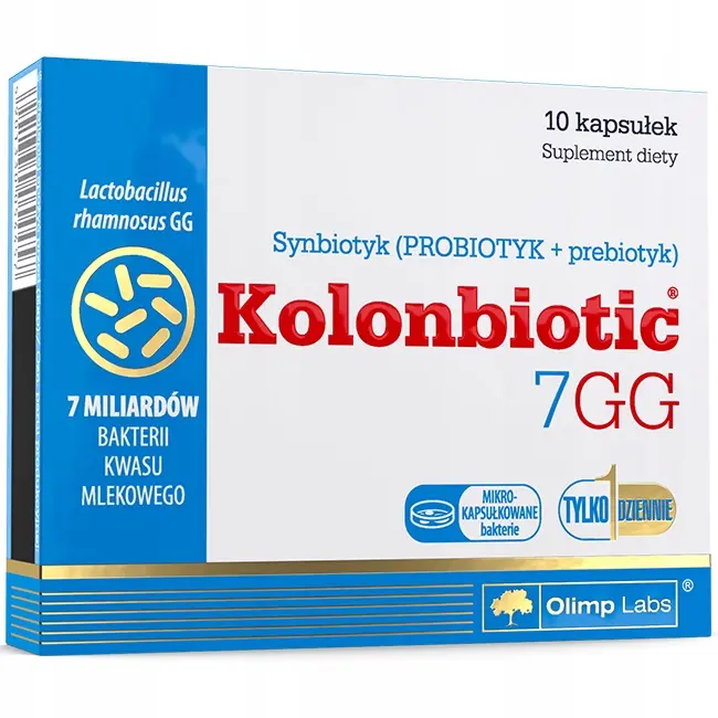 Suplement diety Olimp Kolonbiotic 7GG przeznaczony do stosowania jako środek uzupełniający mikroflorę jelitową. Szczególnie polecany podczas stosowania antybiotyków, a także przez 2-3 tygodnie po zakończeniu antybiotykoterapii, a także w podróży.