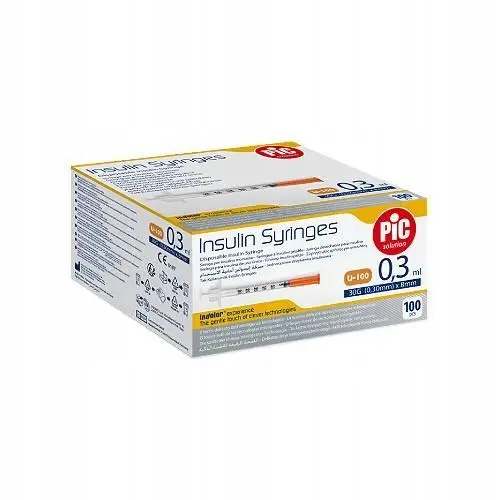 PIC Insulin Syringes Strzykawka Insulinowa G30 0,3x8mm 100 Sztuk