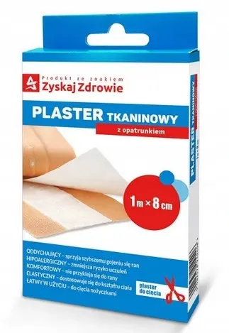 ZYSKAJ ZDROWIE PLASTER TKANINOWY z opatrunkiem 1m x 8cm DO CIĘCIA 1 sztuka
