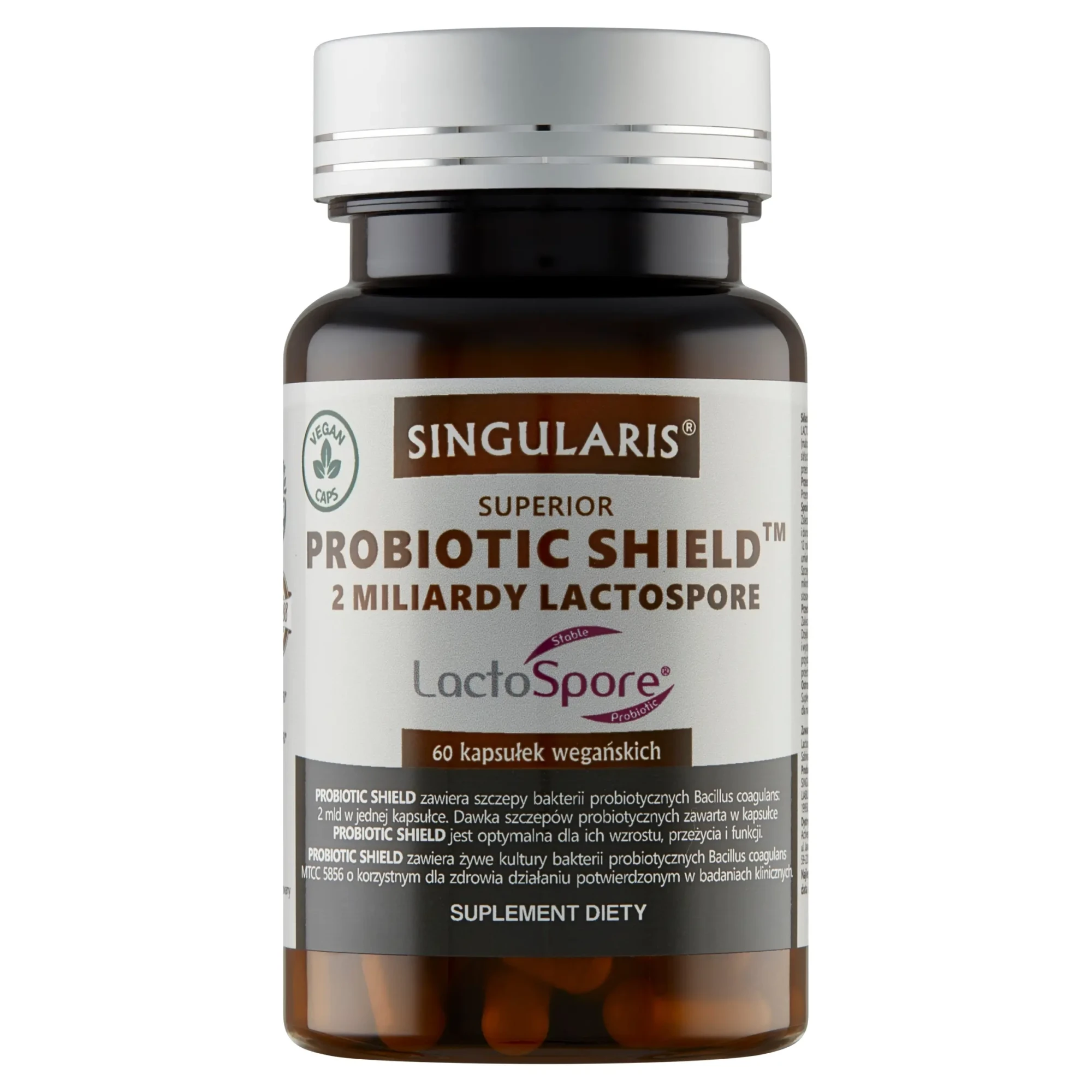 PROBIOTIC SHIELD zawiera żywe kultury bakterii probiotycznych Bacillus coagulans MTCC 5856 o korzystnym dla zdrowia działaniu potwierdzonym w badaniach klinicznych.