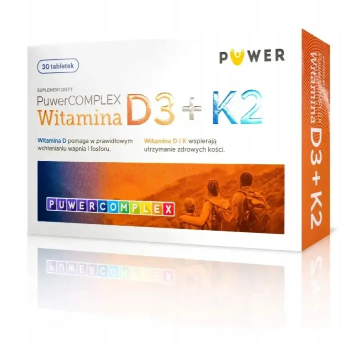Puwer Complex Witamina D3 + K2 - to suplement diety w formie tabletek. Produkt przeznaczony dla osób dorosłych.