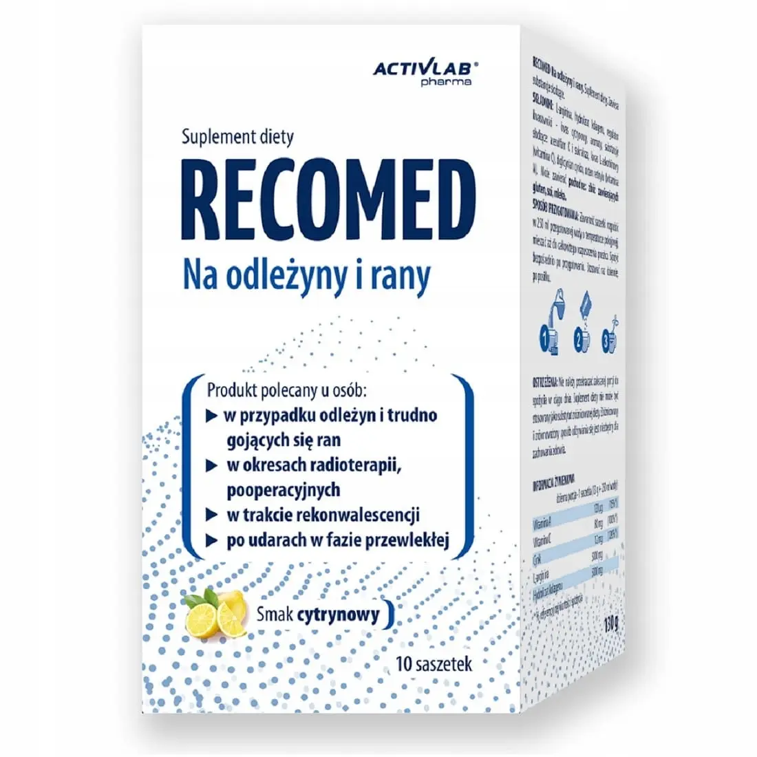 RECOMED Na odleżyny i rany to specjalistyczny produkt, zawierający w swoim składzie: L-argininę, hydrolizat kolagenu, a także witaminy A i C oraz chelat cynku.