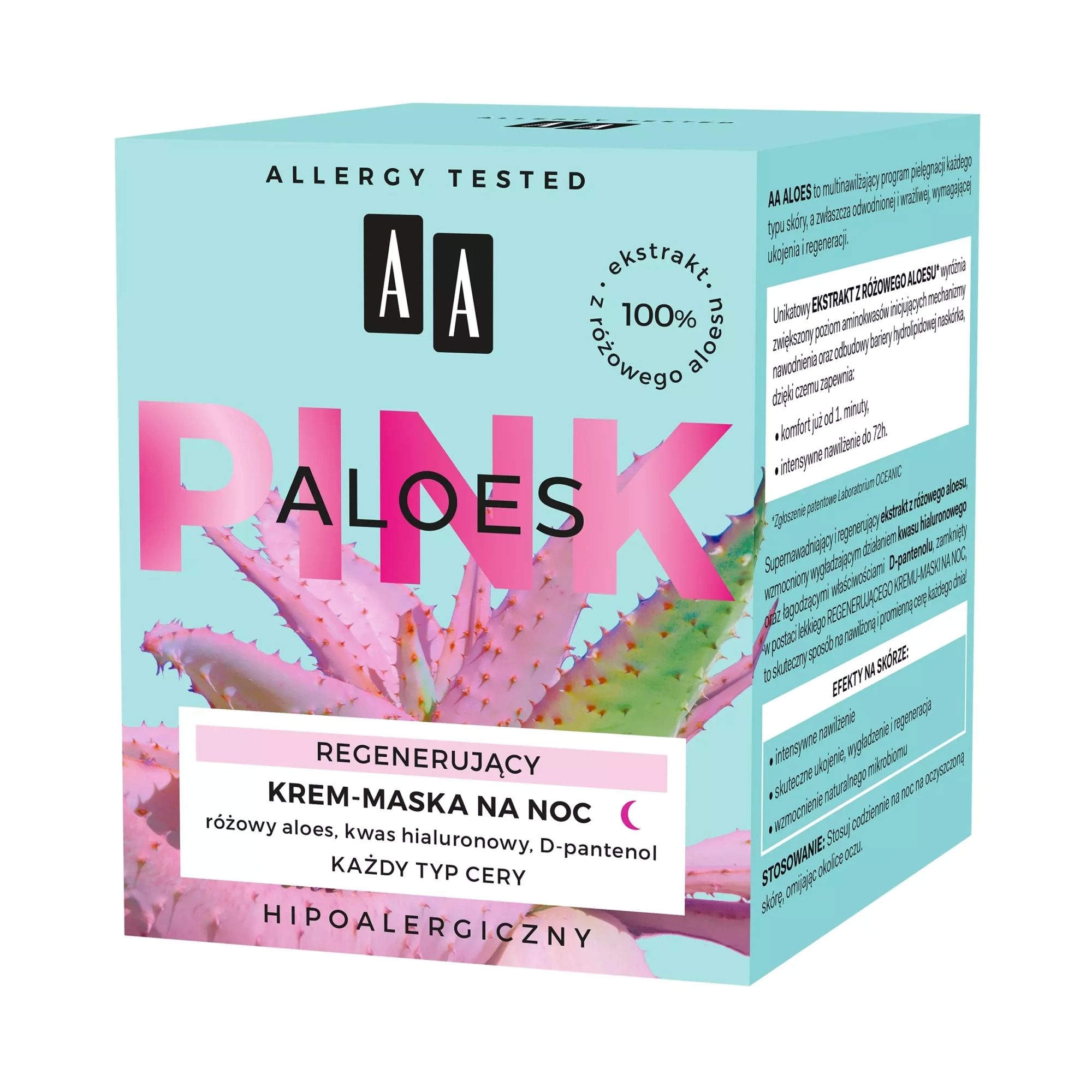 Podaruj swojej skórze nocną regenerację na najwyższym poziomie z AA Pink Aloes Regenerującym Kremem-Maską. To Twój nocny sojusznik we wspieraniu skóry zmagającej się z odwodnieniem, podrażnieniami i pierwszymi oznakami starzenia. Stworzony dla każdego typu cery, a w szczególności tej wrażliwej i wymagającej natychmiastowego ukojenia.