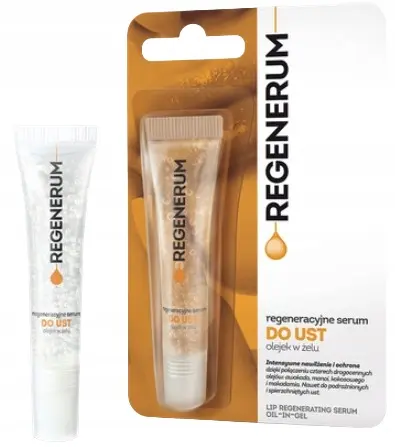 Regenerum regeneracyjne serum do ust, olejek w żelu łączy w sobie moc czterech drogocennych olejów: awokado, monoi, kokosowego i makadamia. Dzięki ich właściwościom, intensywnie nawilża, odżywia i wygładza usta już po pierwszym zastosowaniu.