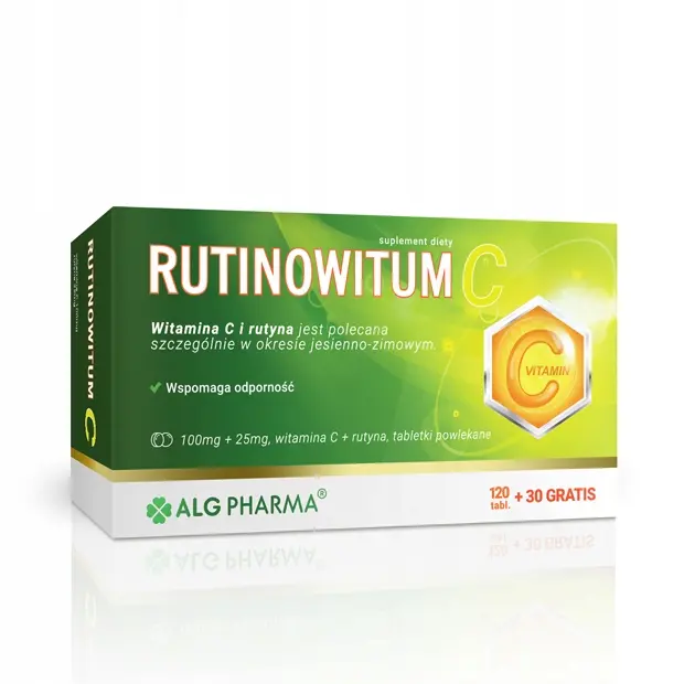 Produkt zawierający witaminę C i rutynę, które wspomagają funkcjonowanie układu odpornościowego, szczególnie w okresie jesienno- zimowym oraz wiosennym. Rutinowitum C to suplement diety zawierający witaminę C oraz rutynę.
