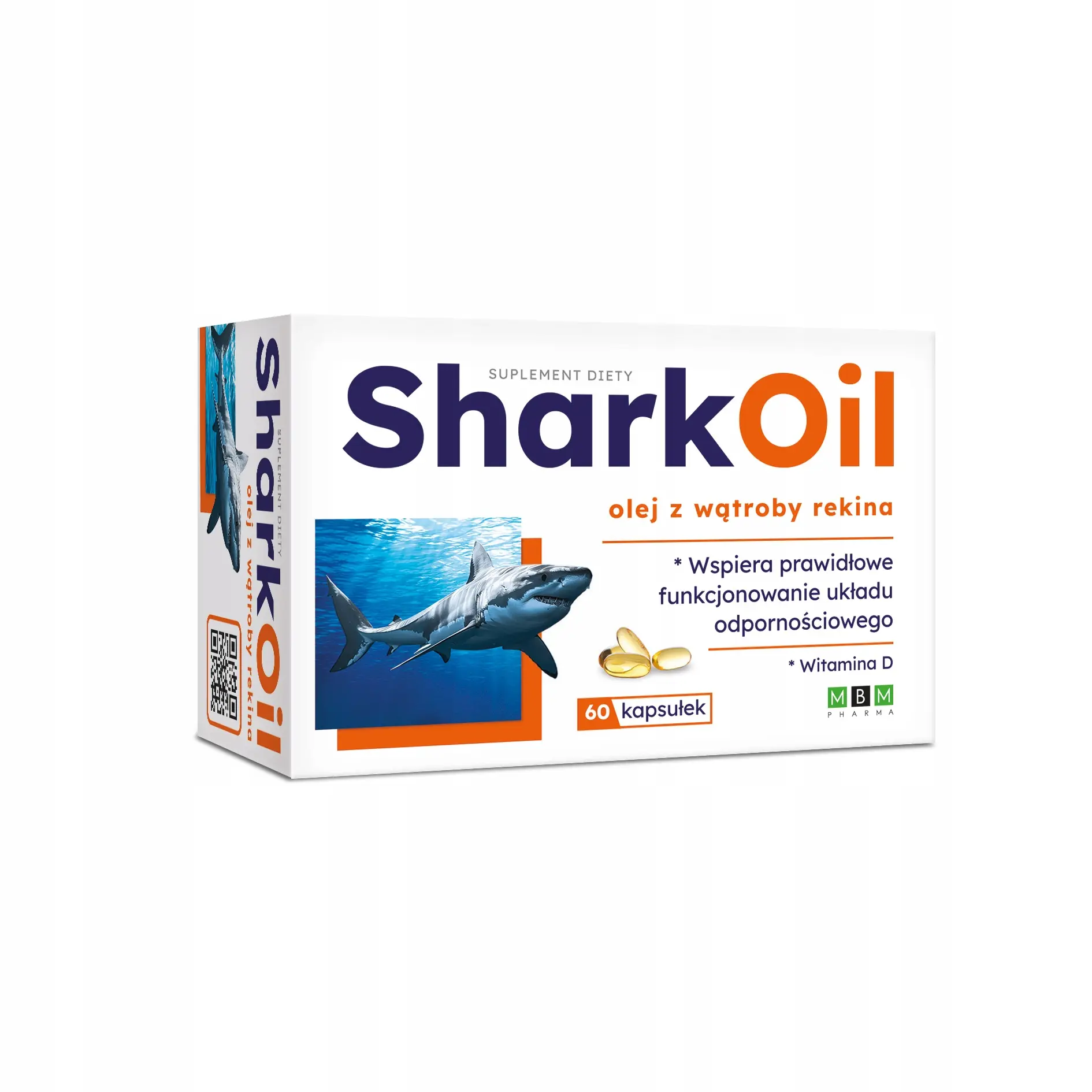 SharkOil – to suplement diety zawierający olej z wątroby rekina (ryby) standaryzowany na 20% zawartości alkilogliceroli. Skład preparatu został wzbogacony o witaminę D3, która pomaga w prawidłowym funkcjonowaniu mięśni i układu odpornościowego, a także w utrzymaniu zdrowych kości oraz zębów.