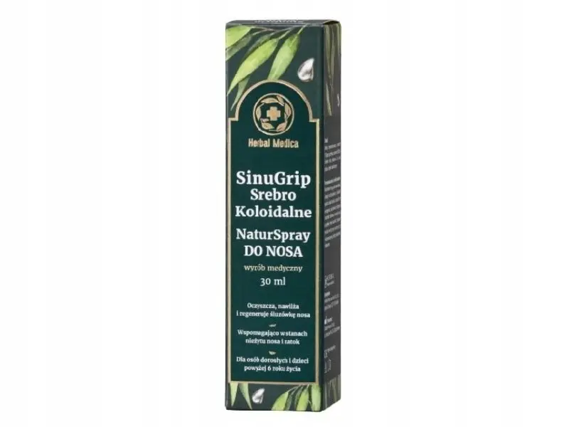 - SinuGrip zawiera wysokie, ale bezpieczne stężenia nanosrebra i nanomiedzi, które wspierają naturalne mechanizmy obronne błony śluzowej nosa.