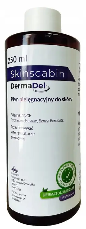Zapewnia działanie ochronne na skórę - zawiera 10% benzoesan benzylu. Bez przeszkód wnika przez zrogowaciały naskórek, docierając do głębszych partii skóry. Może być stosowany również na powierzchnię skóry owłosionej.